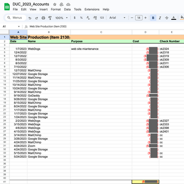 The Web site from Danzantes Unidos is depended on Webdogs for its design and maintenance. Part of this chart is their fee. MailChimp is for spreading word, whether with videos or news, and Google Storage is a monthly fee for shared & uploaded files in the organization.
